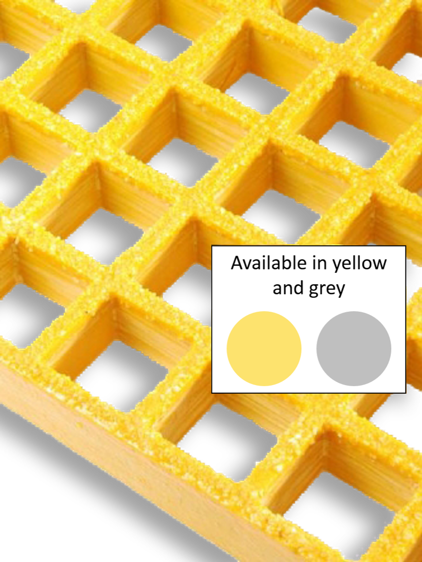 Corrosion resistant: Materials used in forming GRP grating panels are chemical resistant to a large number of chemicals, including Petrol, Oil, Salt Water, Citric Acid, Calcium Chloride etc. Please ask for further details if product is to be applied in conditions with more aggressive chemicals.
