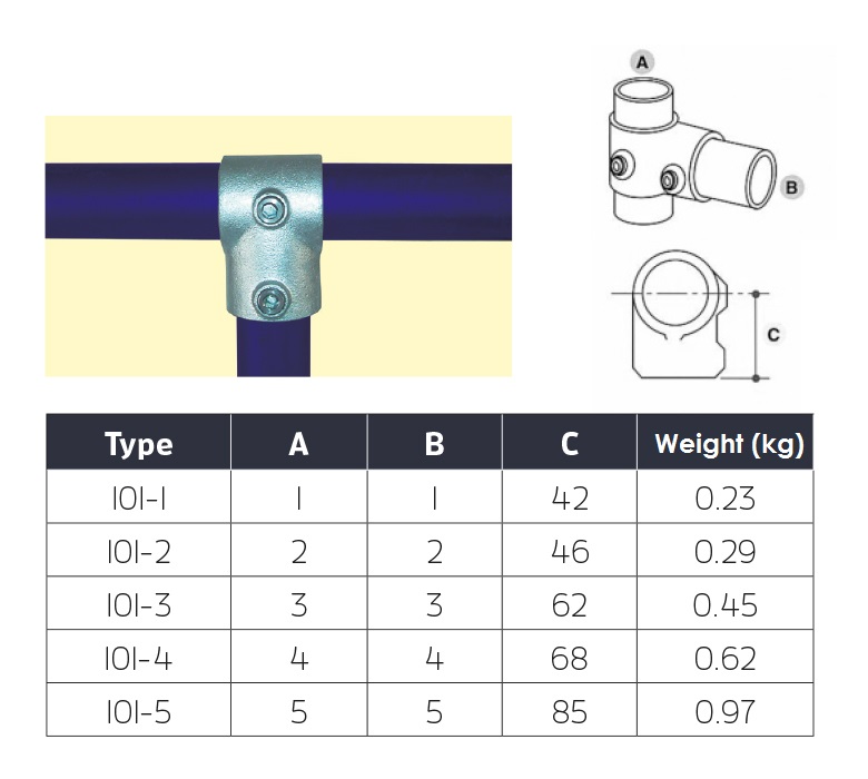 Ezi Klamp’s 101 Short Tee is an excellent option for your handrail project, usually used for connecting tubes safely and securely at a 90° angle. It is most often used to connect upright rails with horizontal top rails, or mid rails to end vertical rails on straight or level handrails and guardrails. This key clamp is a reliable, sturdy fitting, and is available in 5 different sizes, all of which correspond with our steel tube options to give you a neat, robust handrail. As with all our products, Ezi Klamp has stock of the 101 Short Tee readily available at our warehouse in Bristol for speedy delivery, ensuring your project continues to run smoothly.