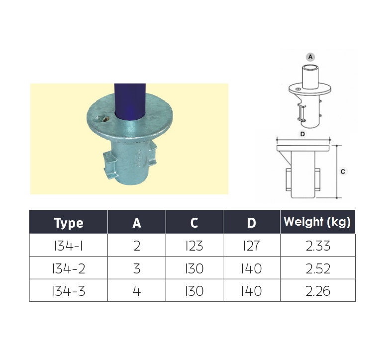This key clamp fitting is a ground socket for concreting in. It can be used effectively when handrail posts may need to be removable, as the setscrew allows the post to be removed when and if required. The 134 Ground Socket is available in sizes 2-4, allowing you to choose the optimum size for your project. This fitting is always kept in stock and available at our warehouse in Bristol, and out team of experts there will help to fulfil your order as quickly and efficiently as possible.