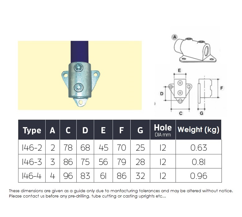 This is a palm-type fitting, usually used to fix handrails or guard rails to walls, ramps and steps. Usually, the tube cannot pass through the bottom of the socket, but if this is a requirement, our experts can bore out the base for a surcharge. The flush design of the fitting allows it to fit in closely to the structure. This key clamp fitting comes in sizes 2-4 to suit your needs. The 146 Palm Fixing is kept in stock at our warehouse in Bristol, meaning it is available and ready to be delivered to you quickly so that your project is kept on track.