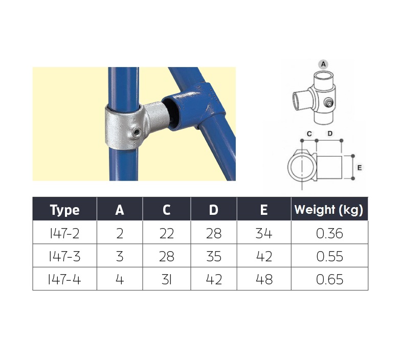 This tee is an offset swivel fitting, which can accommodate varying angles, making it versatile, an excellent benefit to your project. It is often used on ramps, staircases or other declines where the gradient angle is unknown, or where a handrail needs to be offset from the upright posts. This product is a strong, reliable fitting, like all of our range, and is available in sizes 1-5. The 147 Offset Swivel Tee is always kept in stock at our warehouse in Bristol and can be delivered to you faster than our rivals to give your project the best chance of success.