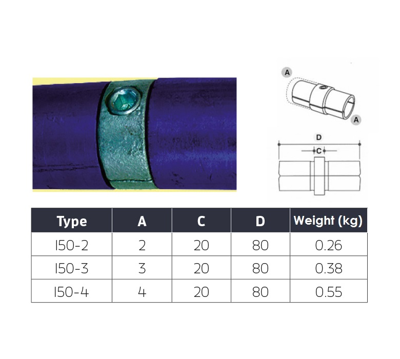 The 150 Internal Joiner is an alternative to the 149 External Joiner key clamp, designed to join two lengths of tube of the same diameter. It offers a smoother, more discrete finish if needed. This fitting is available in sizes 1-5. It is not recommended to use this fitting as a load bearing point. A good stock of this product is kept at out warehouse in Bristol and can be delivered fast so that your project remains on track.