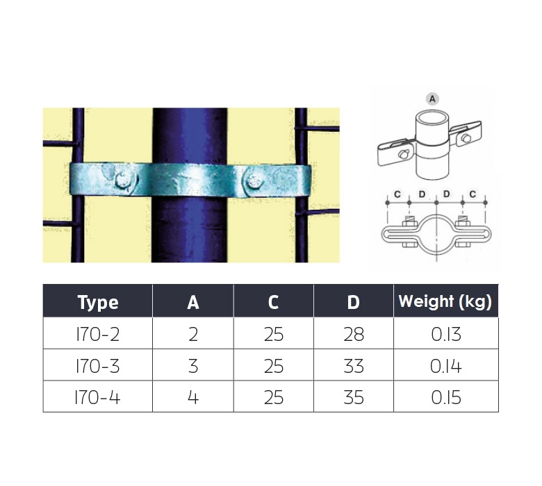 The 171 Double Mesh Clip is primarily used for connecting weldmesh infill to a handrail or guardrail post, both sides of the post. It can also be used for other types of infill panel up to a thickness of 9.5mm. This fitting is available in sizes 1-5 depending on the size of the tubing you are using for your project. It is kept in stock at all times at our warehouse in Bristol, where our team of experts will be happy to help fulfil your order efficiently and quickly.